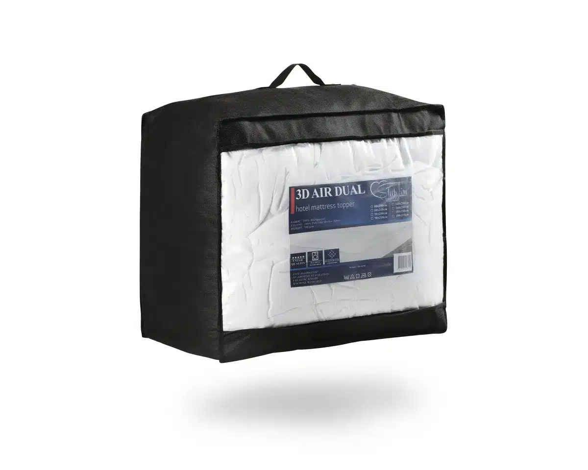 Omdat bedden en matrassen verkrijgbaar zijn in verschillende afmetingen, is het belangrijk dat de Sleeptime 3D Air Dual Layer Hotel oplegmatras ook beschikbaar is in verschillende maten. Je hebt de keuze uit maten zoals 80×210, 90×200, 140×200, 160×200 en 180×200 cm. Kies de maat die het beste past bij jouw matras en bed, zodat je geen last hebt van naden tussen het bed en het matras.