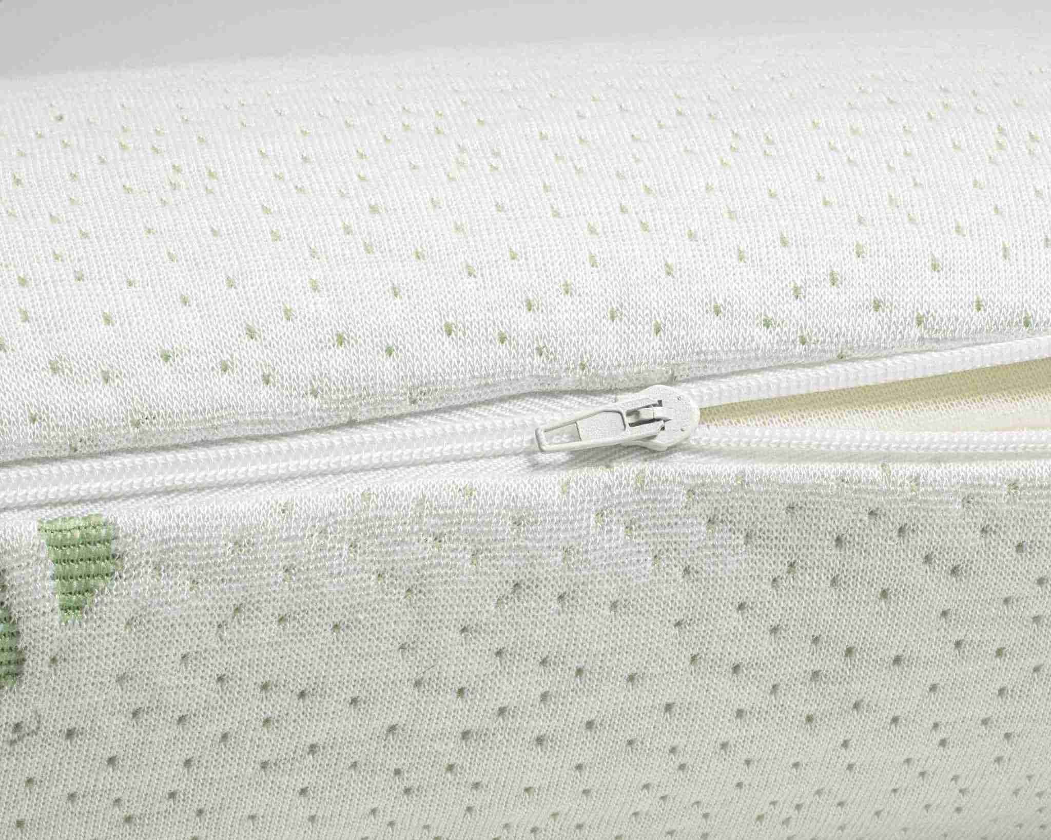 De hoes van dit kussen is gemaakt van dubbel jacquard gebreide stof van 240 gsm. Daarnaast heeft het ook bamboebehandeling. De binnenhoes is van 100% polyesterjersey van 90 gsm en de vulling van een 100% viscogeltraagschuimblok.