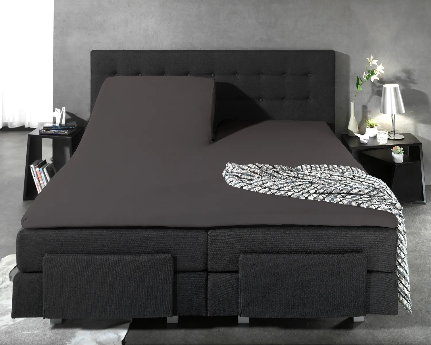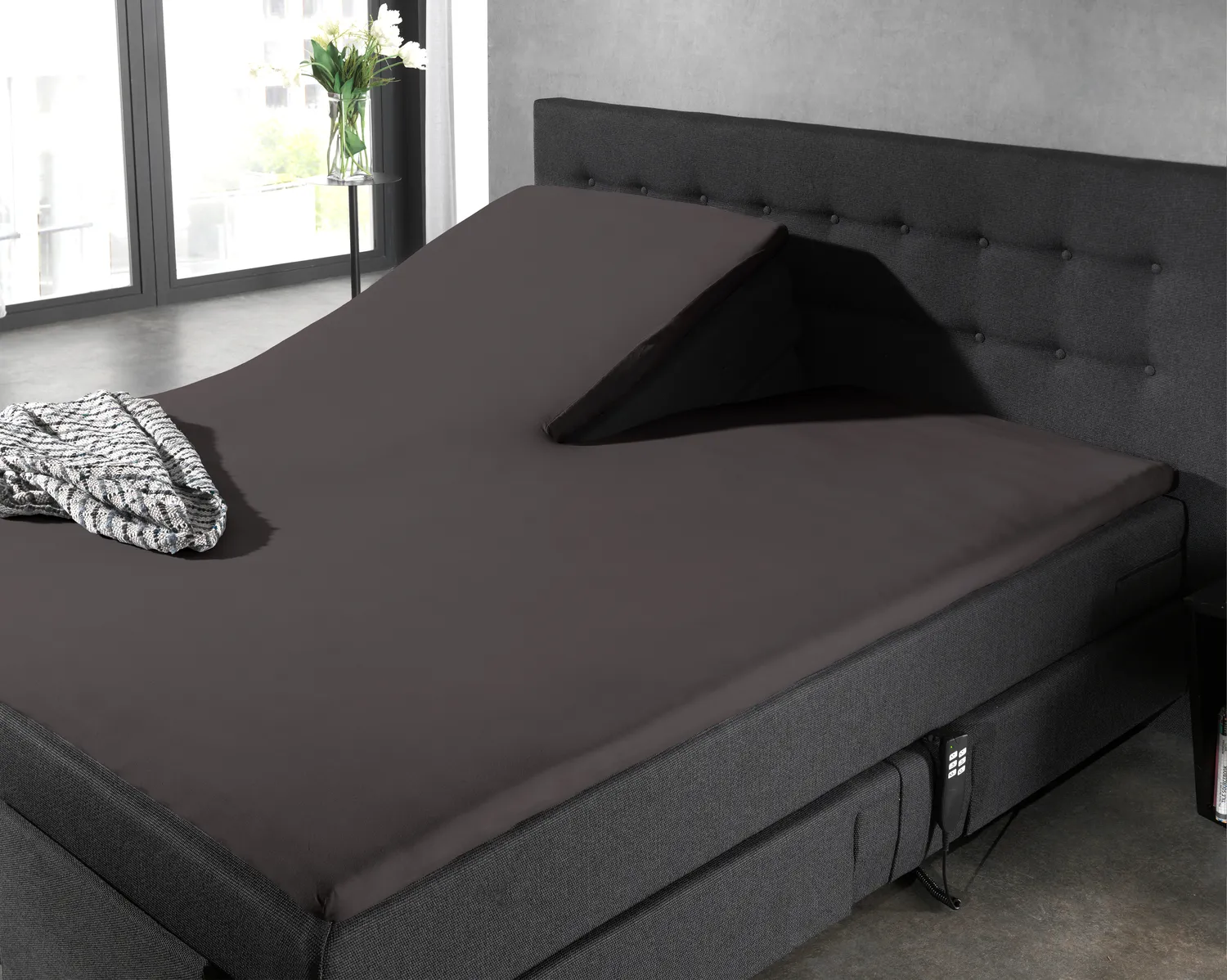 Je verstelbare matras geef je makkelijk een verzorgde uitstraling met dit comfortabele Dreamhouse Splittopper Anthracite. Dit hoeslaken is gemaakt van 100% percalkatoen.