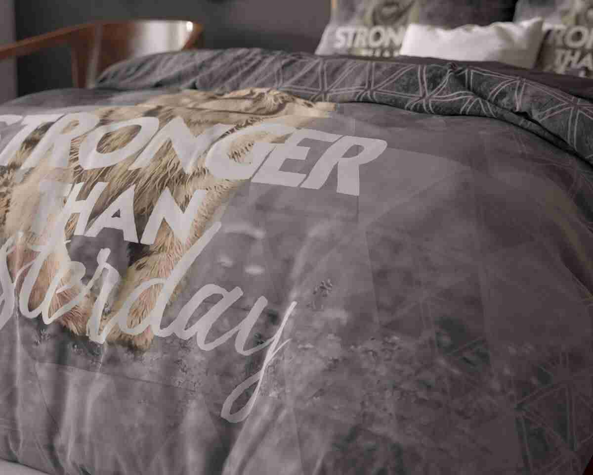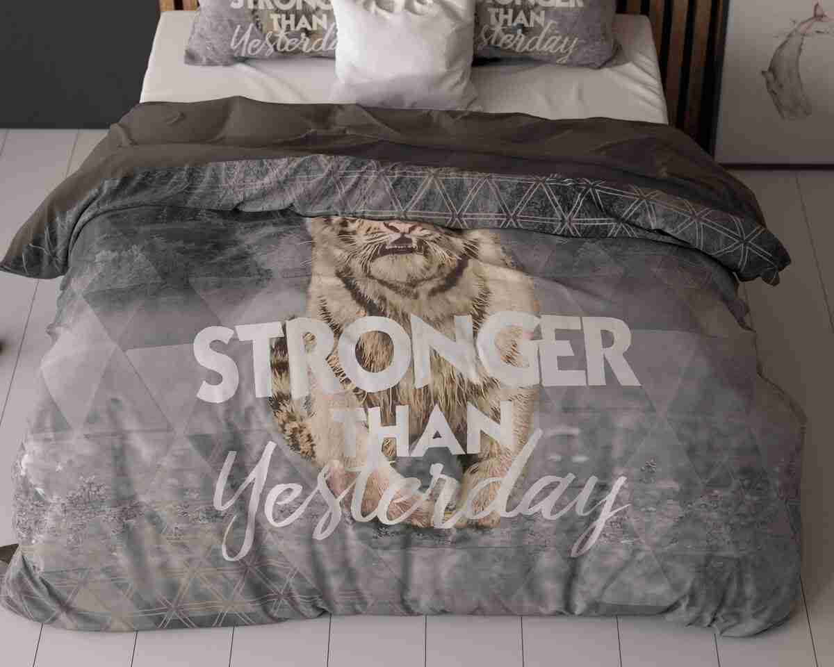 Ervaar ultiem slaapcomfort met ons hoogwaardige Stronger Dekbedovertrek Grijs , ontworpen om zowel stijl als functionaliteit in uw slaapkamer te brengen. Dit dekbedovertrek is vervaardigd uit 100% katoen en biedt een heerlijk zachte en ademende slaapervaring. Het gebruik van katoen zorgt ervoor dat het dekbedovertrek niet alleen comfortabel aanvoelt, maar ook duurzaam is en lang meegaat.