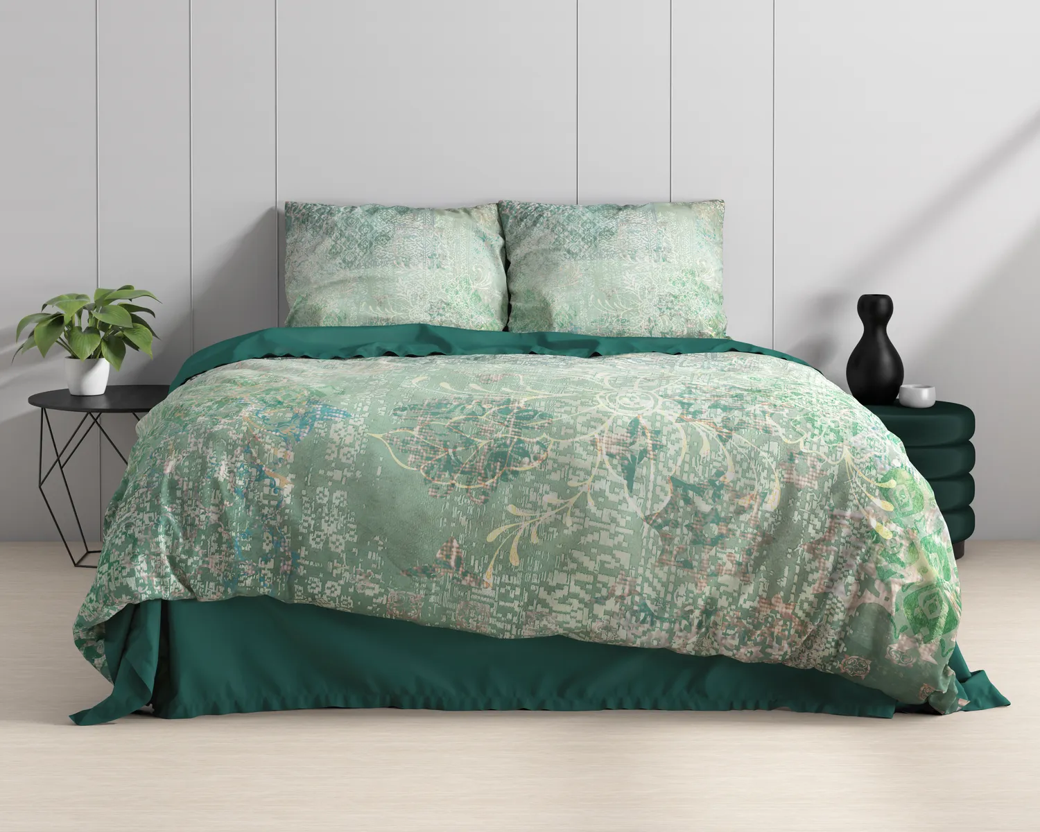 Een Zacht Dekbedovertrek met Stijlvolle Kleuraccenten Het zachte Dreamhouse Wild Dakar Dekbedovertrek groen voegt een stijlvol kleuraccent toe aan je slaapkamer. Het adembenemende ontwerp bestaat uit verschillende elegante patronen op een groene achtergrond. Dankzij de rustige kleurencombinatie straalt het geheel een kalme sfeer uit. De prachtige print is ook te vinden op de bijpassende kussenslopen. Als je het overtrek omdraait, zie je een effen groene kleur. Met een totale lengte van 240 cm kan dit dekbedovertrek gemakkelijk worden vastgemaakt met de handige drukknopen.